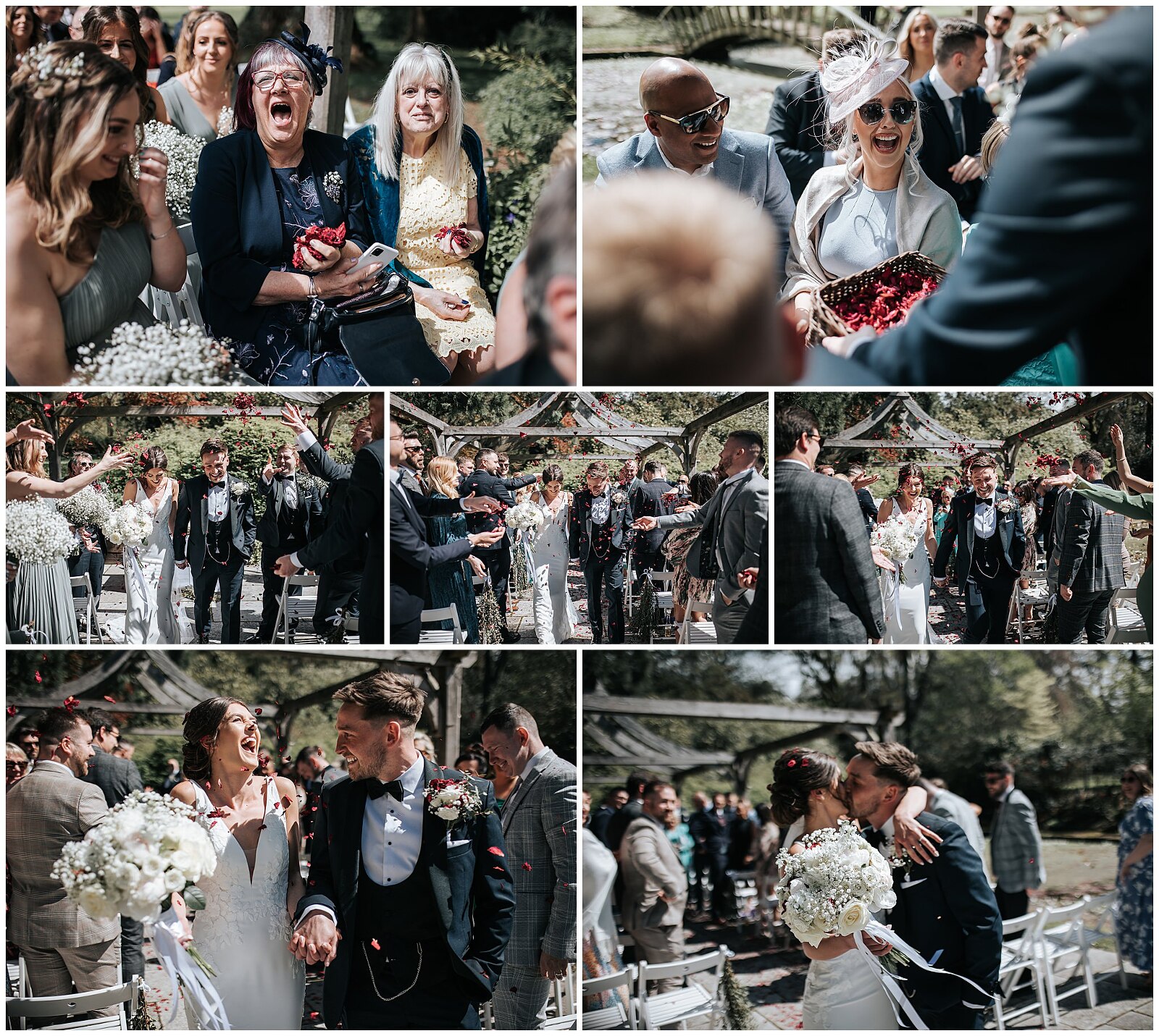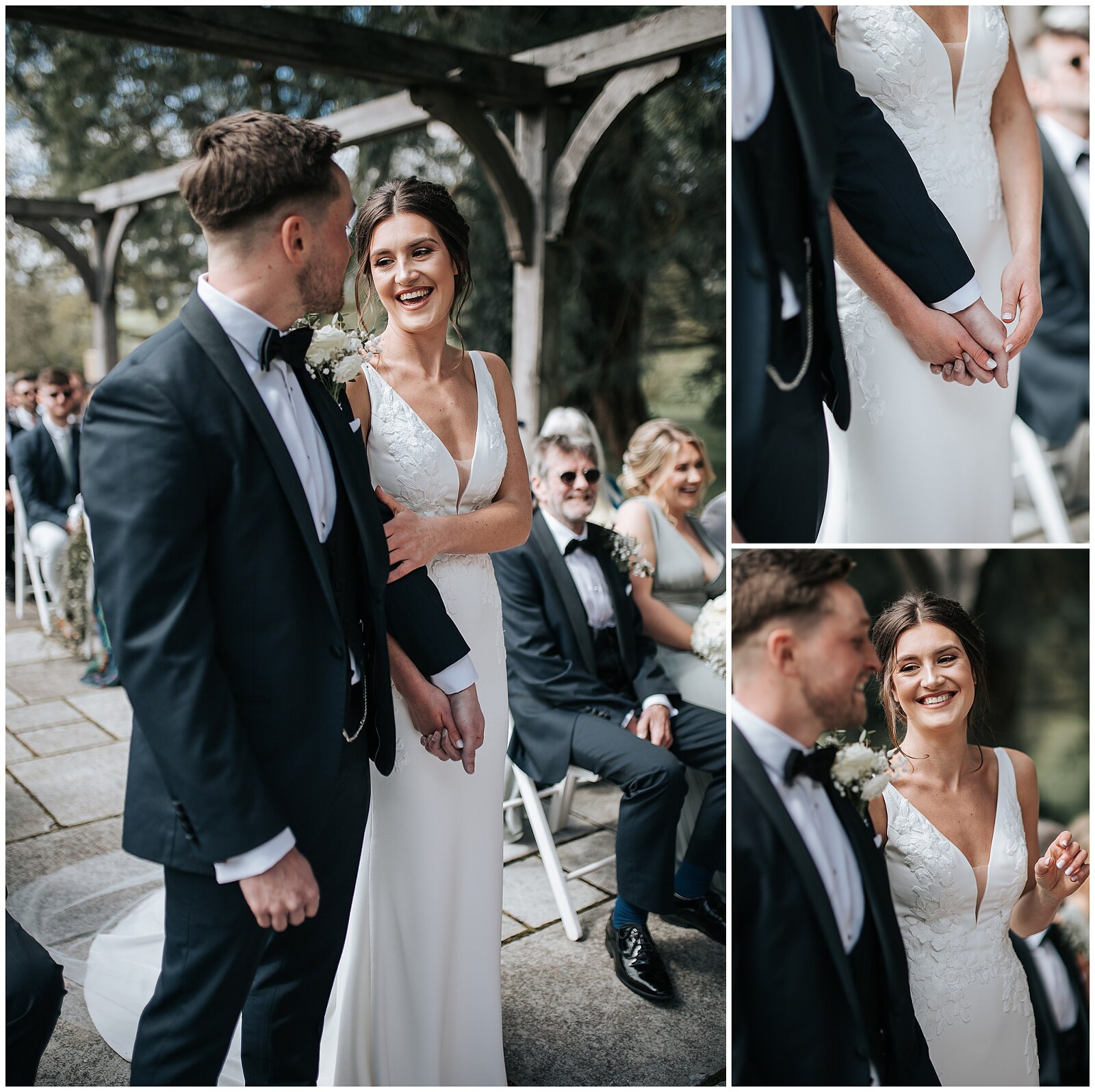 The couple decided on outdoor ceremony, which is so beautiful at Cefn Tilla next to the pond. I love the long walk the girls get from the house over to the pond, with the guests early waiting and taking peeks to see them. It’s so exciting to see the nervousness of the groom from the front, while the girls walk across the courtyard. I always encourage the bridal party to take their time and enjoy their moment.