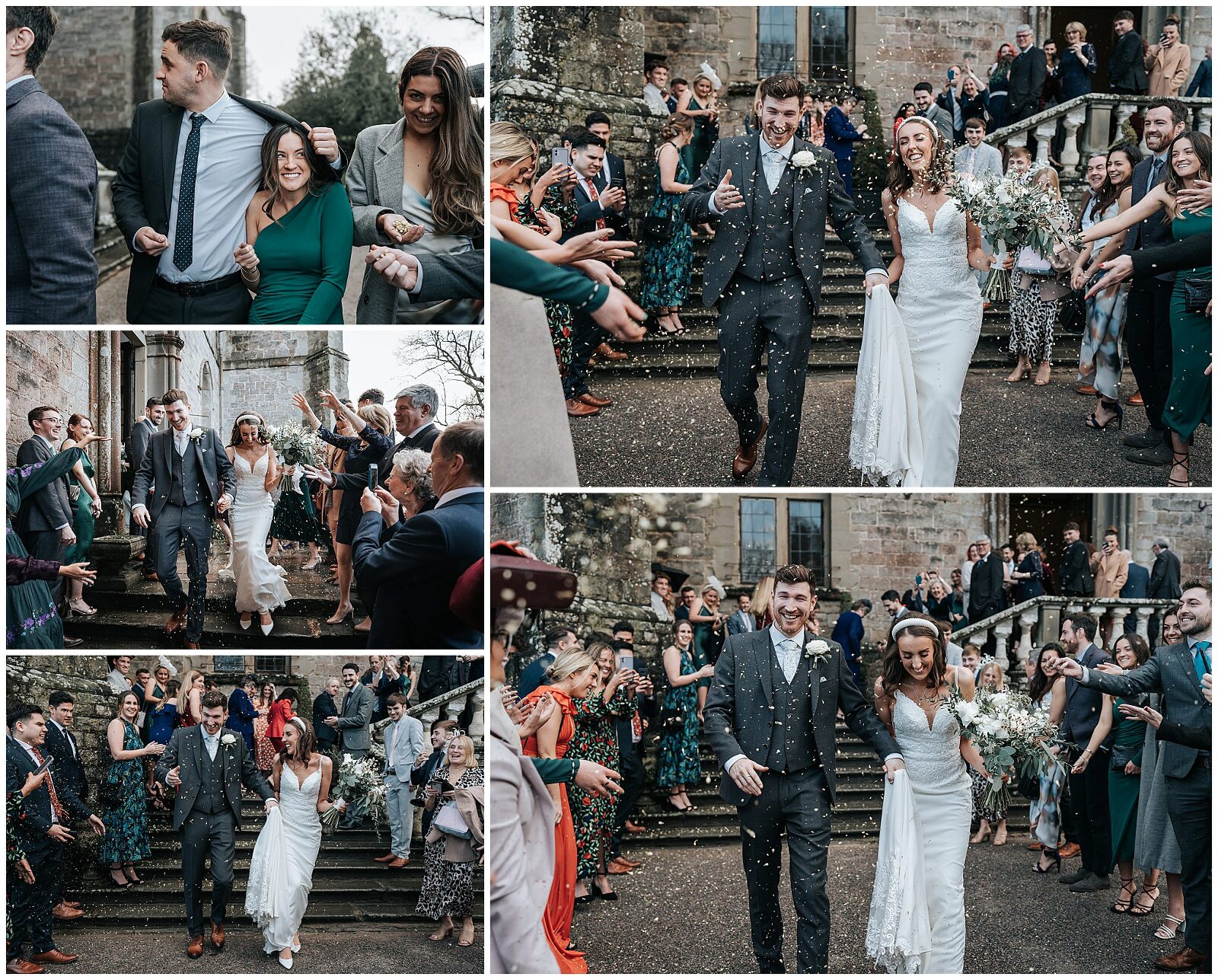 Clearwell Castle really felt like the perfect setting for a winter wedding for Meg and Steffan. The light inside the main room, which floods through the main door and windows, bathes your guests beautifully if you catch it just right. I also love the fact the first dance and early evening party is in the front room. The wooden floor boards and lit fireplace give a really cosy feel and just looks great on camera.