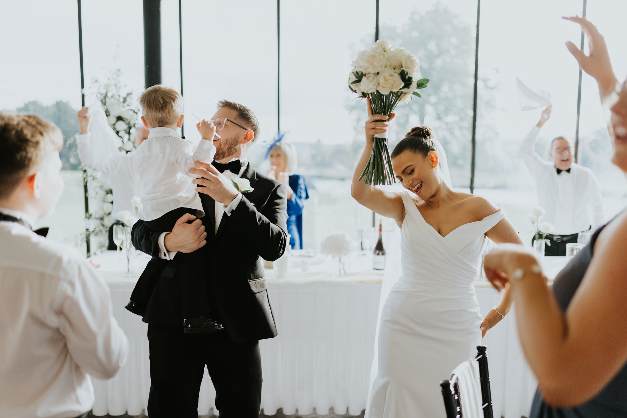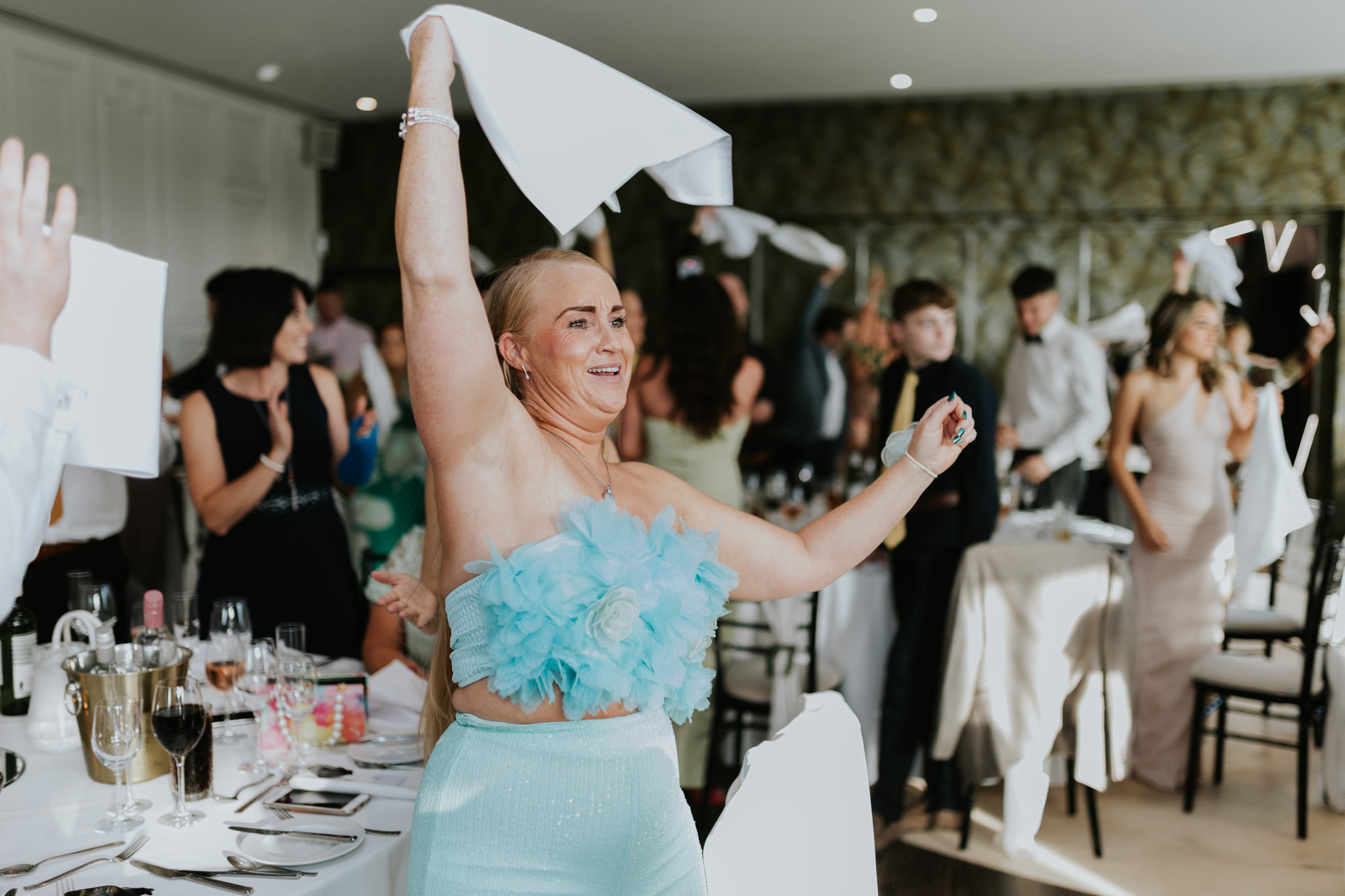 The party atmosphere was electric, with music supplied by Jeris throughout the whole day. The couple made an epic entrance into their wedding breakfast, with the classic swinging of the napkins. The guests were loving it, so we made sure to get stuck in a capture all the excitement from the guests.