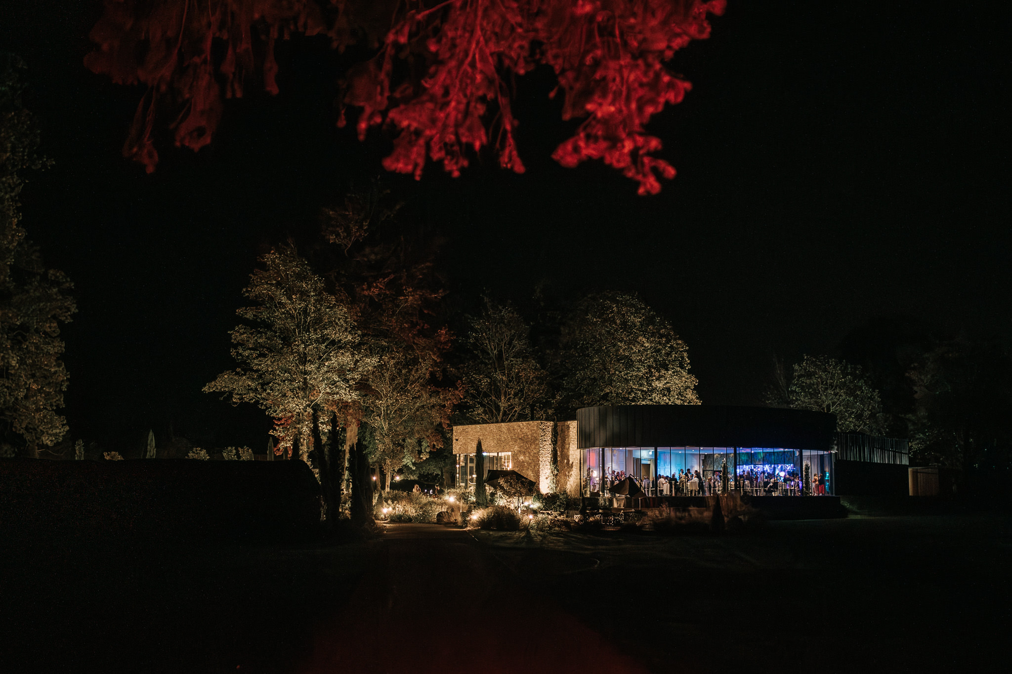 After the nuptials, confetti and group photo, all the guests headed over to the K-Room for cocktails. The bar area has a great party atmosphere, while not feeling enclosed due to the large stretch of windows everywhere. The reception area has their signature curve which bends towards the lake on the grounds. The sunsets in front of this area, so can offer beautiful warm light in the evenings.