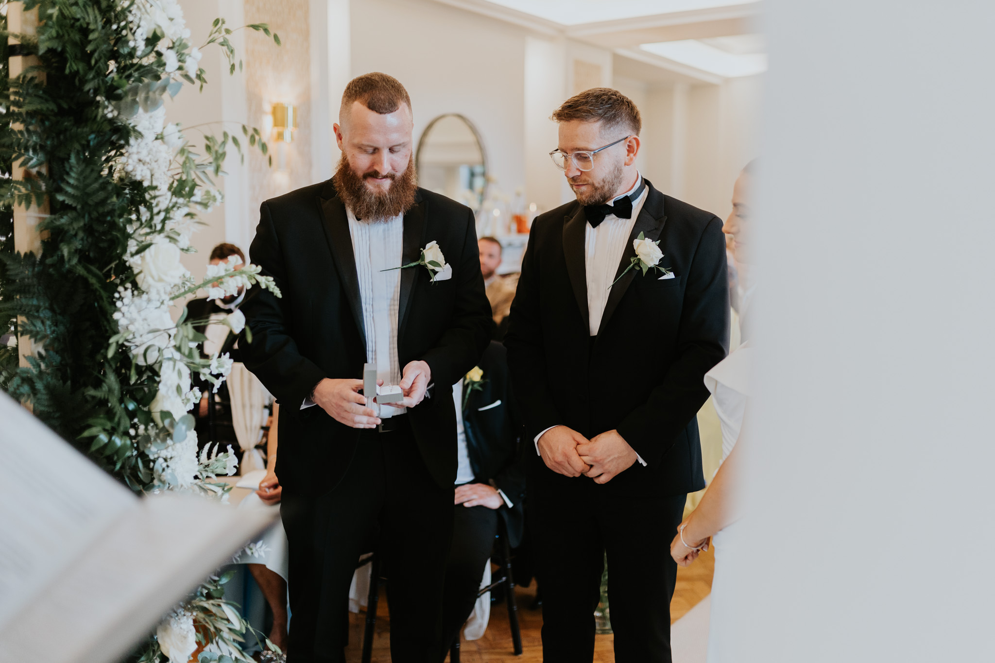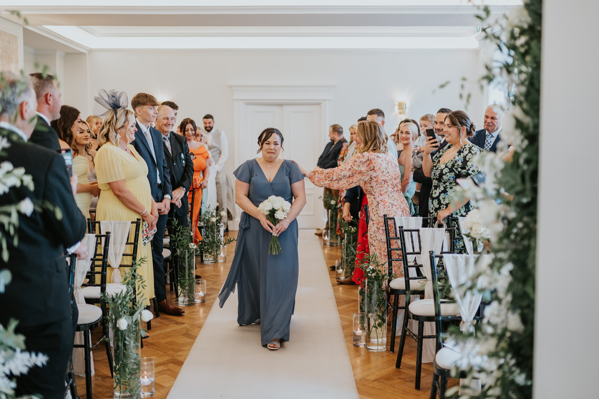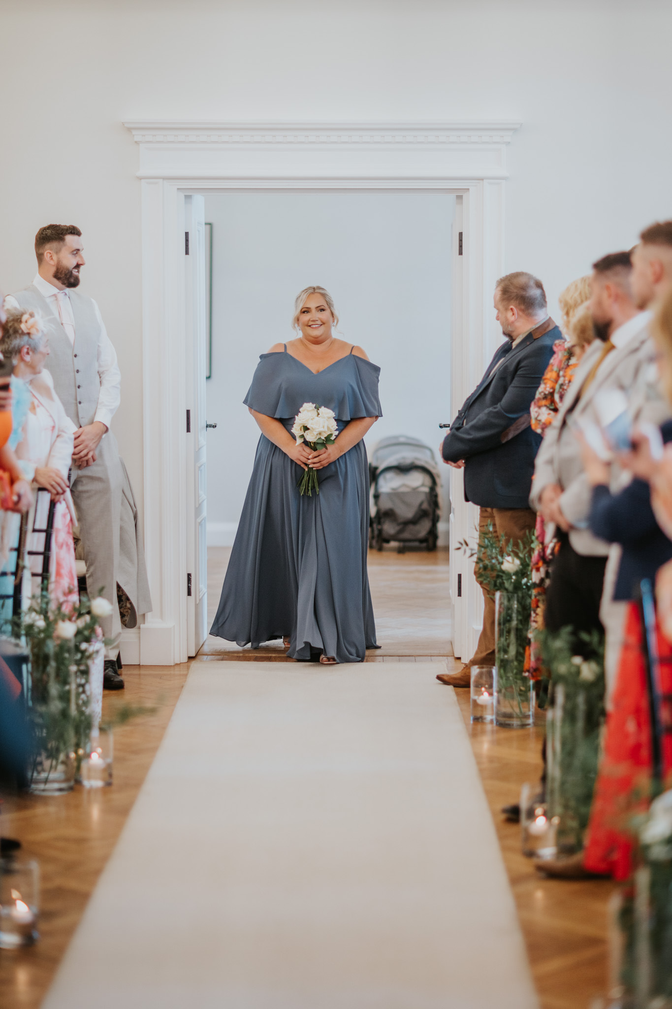 The ceremony room is something else at Sant Ffraed House. You can actually position yourself in two separate places here, depending how it fits your day – In front or behind the pillars. Behind the pillars gives you more of an intimate setting for close family with a slight separation to the rest of your guests. Some couples favour this.