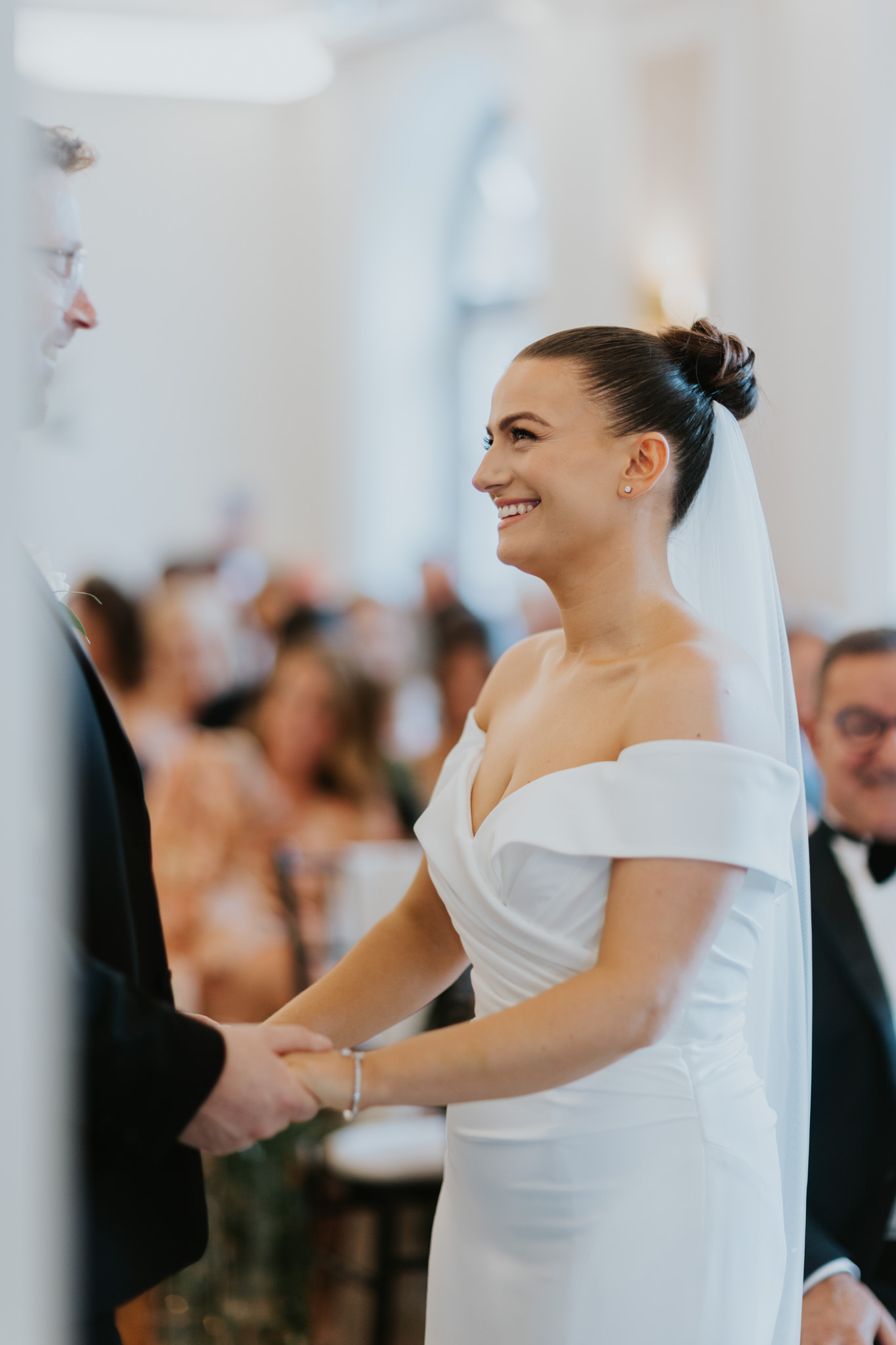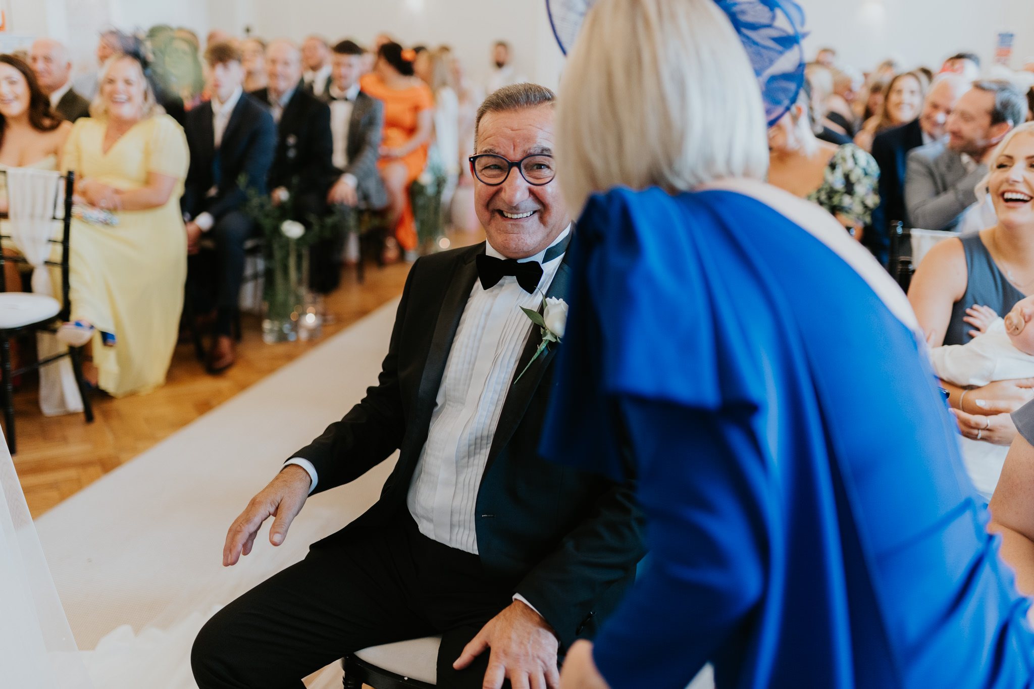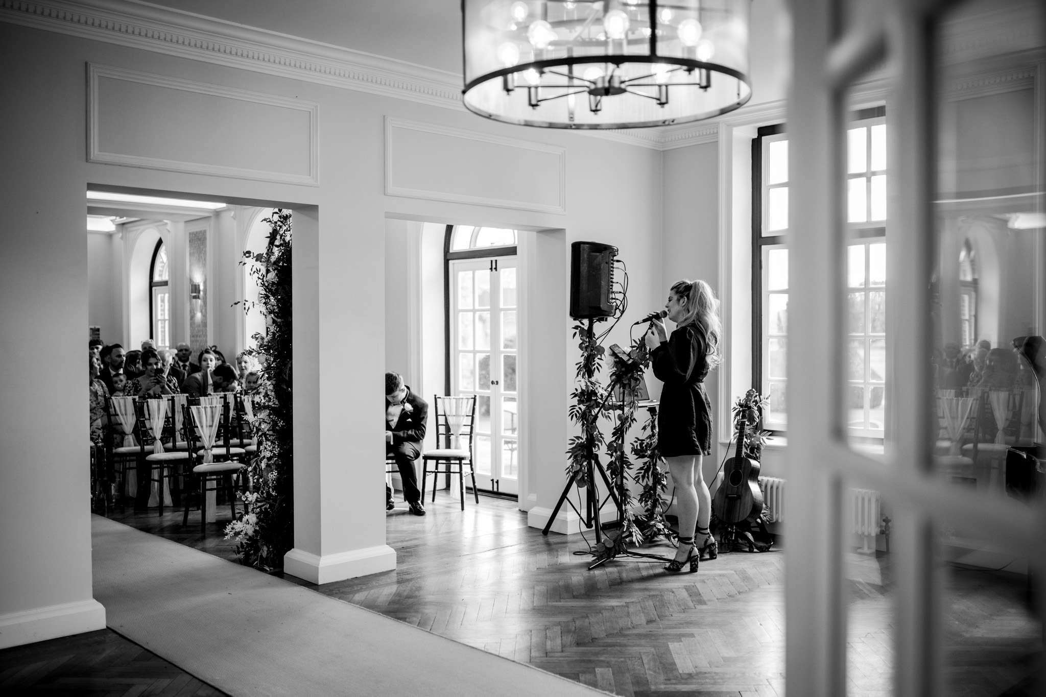 The ceremony room is something else at Sant Ffraed House. You can actually position yourself in two separate places here, depending how it fits your day – In front or behind the pillars. Behind the pillars gives you more of an intimate setting for close family with a slight separation to the rest of your guests. Some couples favour this.